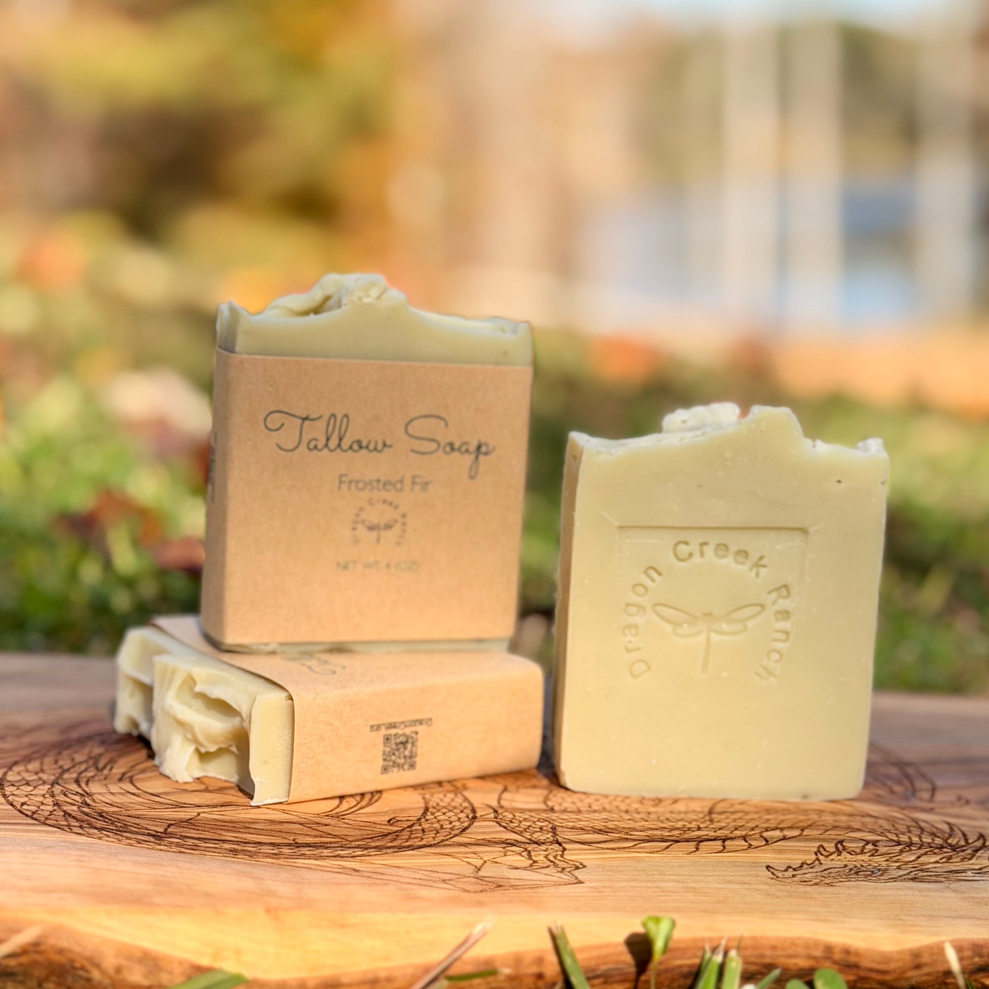 Step into a crisp winter forest with Frosted Fir, a handcrafted bar inspired by snowy evergreens and cozy cabin mornings. Made with grass-fed tallow, olive oil, coconut oil, and castor oil, this soap produces a creamy, nourishing lather that leaves skin soft and refreshed. French green clay gives it a natural, earthy hue and helps draw out impurities, while the phthalate-free/SLS-free/paraben-free Fraser Fir fragrance captures the scent of fresh-cut pine and cool mountain air.