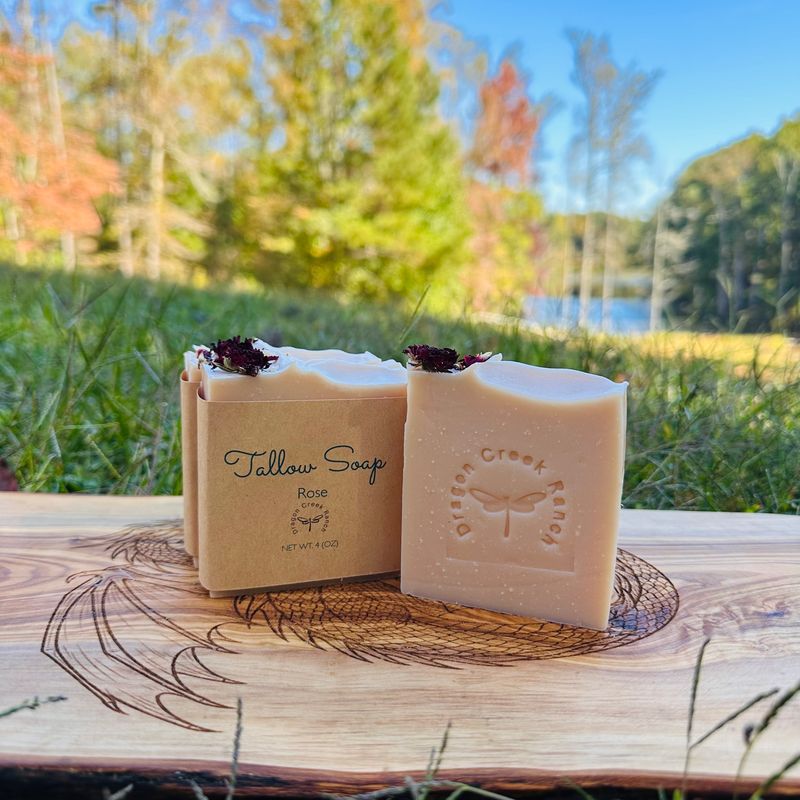 Indulge your senses with our luxurious Rose Tallow Soap, handcrafted with love right here on our family farm in Northwest Georgia. Each bar has the delicate essence of our dehydrated roses, bringing the beauty of our garden directly to your skincare routine.